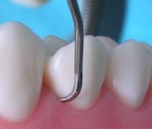 歯石の下にスケーラーを入れて、真上に引く垂直方向ストロークが、